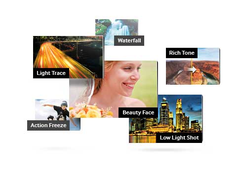 Tap the smart mode button to take advantage of numerous special shoot modes. Action Freeze mode lets you capture a high-speed scene at a sporting event, while Rich Tone can be used to create surrealistic photos with vibrant colors.