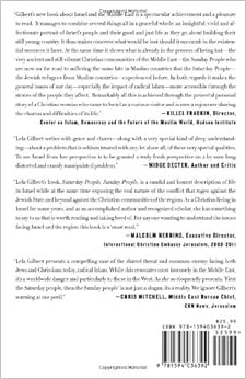 Hillel Fradkin Director, Center on Islam, Democracy and the Future of the Muslim World, Hudson Institute. "Gilbert's new book about Israel and the Middle East is spectacular achievement and a pleasure to read. It manages to combine several things all in a graceful whole: an insightful, vivid and affectionate portrait of Israel's people and their good and just life as they go about building their still young country. It thus makes concrete what would be lost should it succumb to the existential menaces it faces. At the same time it shows what is already in the process of being lost - the very ancient and still vibrant Christian communities of the Middle East - the Sunday People, who are now on the road to suffering the same fate in Muslin countries that the Saturday People - the Jewish refugees from Muslim countries - experienced before. In both regards it makes the general issues of our day - especially the impact of radical Islam -- more accessible through the stories of the people they affect. Remarkably all this is achieved through the powerful personal story of a Christian woman who came to Israel as a curious visitor and is now a sojourner sharing the charms and difficulties of its life."