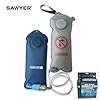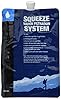 FEATURES of the Sawyer PointONE Squeeze Water Filter System Set Ability to roll up, it takes up virtually no space in your pack Simply fill up the pouch of your choice at a lake, stream or river, screw the filter directly onto the pouch and 1) Squeeze the bag and filter water into your water bottle or container of choice, 2) Drink directly from the filter which has a built in push pull cap for on/off functions, 3) Attach the filter onto most threaded water bottles including 2 liter bottles Kit includes: 3 Lightweight Durable Collapsible Pouches (reusable) in 12 oz, 16 oz, and 32 oz, Sawyer 0.10 Absolute Micron Hollow Fiber Membrane Screw On/Off Water Filter, Replaceable Pop Up Drinking Spout, Cleaning Syringe Life Expectancy: 1 Million Gallons Guaranteed