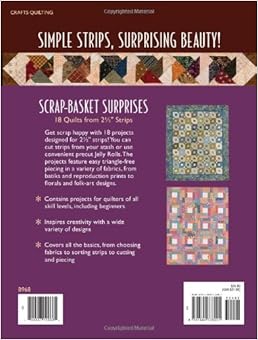 Scrap Basket Surprises features 18 quilts, all made from 2-1/2" strips, so this book is jelly roll friendly. Kim Bracket teaches you how to make your own scrap basket of strips from using stash fabrics, pre-cut strips, strip swaps and new fabrics. She also explains clever ways to sort and store the 2-1/2" strips you will be collecting for your projects in the book.