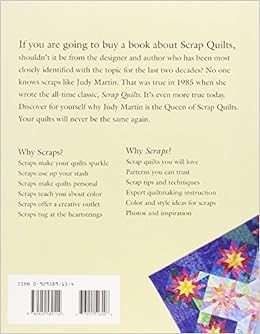 For two decades no one has been more closely identified with Scrap Quilts than Judy Martin. That was true in 1985 when she wrote the all-time classic book, Scrap Quilts. Its even more true today. Scraps is Judy Martins 18th book in an amazing career that dates back to 1979 when she began working as an editor at Quilters Newsletter Magazine. Among Judys many popular titles are Pieced Borders, Judy Martins Ultimate Book of Quilt Block Patterns, Taking the Math Out of Making Patchwork Quilts, and The Creative Pattern Book.