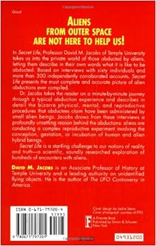 In Secret Life, Professor David M. Jacobs of Temple University takes us into the private world of those abducted by aliens, letting them describe in their own words what it is like to be abducted. Based on interviews with sixty individuals and more than 300 independently corroborated accounts, Secret Life presents the most complete and accurate picture of alien abductions ever compiled. Dr. Jacobs takes the reader on a minute-by-minute journey through a typical abduction experience and describes in detail the bizarre physical, mental and reproductive procedures that abductees claim have been administered by small alien beings. Jacobs draws from these interviews a profoundly unsettling reason behind the abductions: aliens are conducting a complex reproductive experiment involving the conception, gestation. or incubation of human and alien hybrid beings.