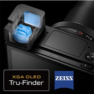 View every scene in rich detail with the bright and retractable XGA OLED Tru-Finer electronic viewfinder (EVF) with high resolution equivalent to approx. 2,359k-dots. The viewfinder faithfully displays what will appear in your recording, including the effects of your camera settings, so you can accurately frame your image, focus and monitor the results. The ZEISS T* coating enhances clarity and reduces flare and reflection in the eyepiece optics.