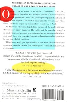 The original publication by Harold Hart in 1960 of A. S. Neill's Summerhill turned out to be a totally unexpected bestseller. I don't know how many editions it went through before the original furore it had created finally died down with the passing of educational fashions away from "freedom" toward curriculum, testing, discipline and lots of homework as a prescription for educational success. I guess the turning point came in the mid-eighties, along with the demise of some of the numerous small educational experiments that had sprung up all over the country which (as Neill warns can easily happen) had misidentified "license" with true freedom - which involves learning responsibility. With the current epidemic of school violence and the airing of information about the actual frequency of bullying - in the schoolyard and elsewhere - opinions wax hot over whether an authentic response ought to be to introduce more relaxed humanism toward students - or to tighten up with even more discipline and objective testing than now exists! The jury is still out on this one, but the verdict doesn't look good for the humanists! It's high time dear old Neill was allowed to have his say in the discussion once again! Albert Lamb's new edition of Summerhill allows Neill to speak with even more of his own voice than was included in the original. Neill's views on several issues thought to be too controversial to be included in a book published in an America just beginning to emerge from an era of McCarthyism have been restored to their proper place by Lamb. They sound far less controversial now than they did during the sixties.Read more ›