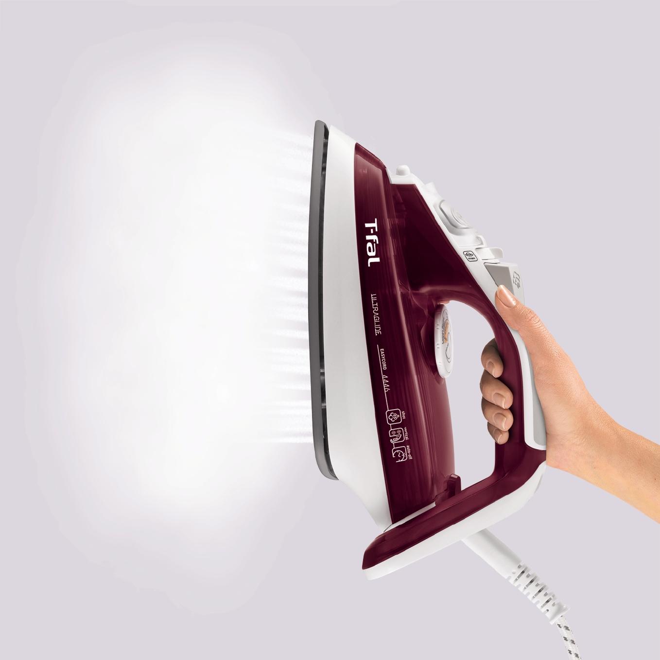 T-fal FV4446 Ultraglide Easycord Steam Iron Ceramic Scratch Resistant Non-Stick Soleplate with Auto-Off, 1700-Watt, Red