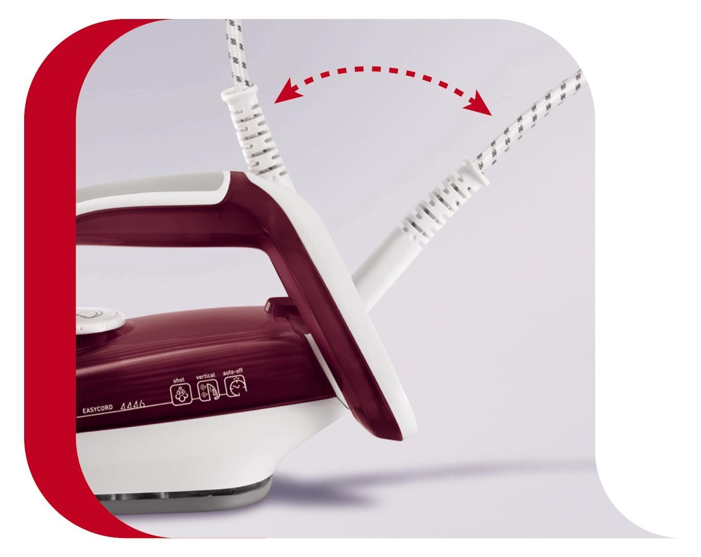 - Easycord exit system keeps the cord out of the way when ironing and prevents from re-wrinkling already-ironed fabrics.