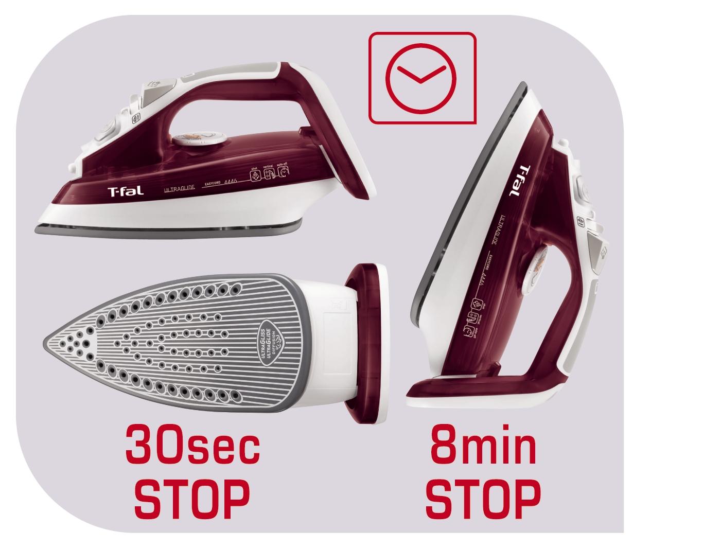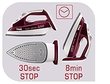 - 3-way auto-off feature : the iron will shut off automatically after 30 sec of inactivity if left on its soleplate or tipped over on its side, and 8 min on the heel.