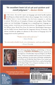 A three-year-old toddler is "a grammatical genius"--master of most constructions, obeying adult rules of language. To Pinker, a Massachusetts Institute of Technology psycholinguist, the explanation for this miracle is that language is an instinct, an evolutionary adaptation that is partly "hard-wired" into the brain and partly learned. In this exciting synthesis--an entertaining, totally accessible study that will regale language lovers and challenge professionals in many disciplines--Pinker builds a bridge between "innatists" like MIT linguist Noam Chomsky, who hold that infants are biologically programmed for language, and "social interactionists" who contend that they acquire it largely from the environment. If Pinker is right, the origins of language go much further back than 30,000 years ago (the date most commonly given in textbooks)--perhaps to Homo habilis , who lived 2.5 million years ago, or even eons earlier. Peppered with mind-stretching language exercises, the narrative first unravels how babies learn to talk and how people make sense of speech. Professor and co-director of MIT's Center for Cognitive Science, Pinker demolishes linguistic determinism, which holds that differences among languages cause marked differences in the thoughts of their speakers. He then follows neurolinguists in their quest for language centers in the brain and for genes that might help build brain circuits controlling grammar and speech. Pinker also argues that claims for chimpanzees' acquisition of language (via symbols or American Sign Language) are vastly exaggerated and rest on skimpy data. Finally, he takes delightful swipes at "language mavens" like William Safire and Richard Lederer, accusing them of rigidity and of grossly underestimating the average person's language skills. Pinker's book is a beautiful hymn to the infinite creative potential of language. Newbridge Book Clubs main selection; BOMC and QPB alternates.