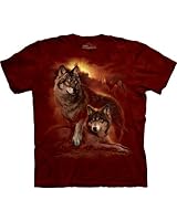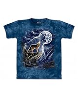Hand dyed shirt featuring a stunning screen print of 3 wolves howling at a moon on a preshrunk, 100% cotton tee dyed and printed by the mountain.