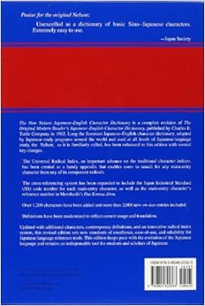 ôThis reigning authority on Japanese character definitions is based on missionary-scholar Nelson's first 1962 edition of The Modern Reader's Japanese-English Character Dictionary. Essential for all Japanese and East Asian studies collections.ö —Library Journal
