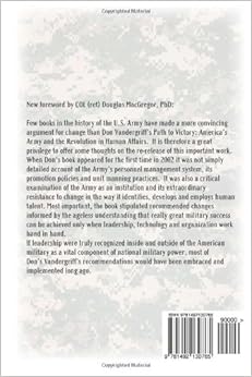Donald Vandergriff is one of those rare men who live their beliefs. Now, he has written a fine, clear-thinking, heartfelt book detailing the deep flaws in the Army's (and our military's) personnel system. But the book is much broader than that. Although he does not use quite these terms, the text constitutes a demand for a sensible post-modern personnel system that rewards the core military virtues, in place of our current, long-outdated, poorly-performing industrial-age system, a legacy of both Henry Ford's assembly line mentality, in which all parts, even the human ones, are interchangeable, and a bizarre, inchoate conviction within the Army that, really, it's still 1944 and the draft will supply the needed talent to replace that which is squandered. Even now, in 2002, there is a bizarre belief among the Army's hierarchy that every officer (and soldier) is easily replaceable, if not perfectly interchangeable. Well, tell that to corporate America, or the scientific community, or to the arts community. America has achieved its paramount position because we recognize and reward the unique talents of the individual--but our military resists excellence whenever it can (what passes for excellence is a polished conformity to superficial forms). Our broken-down, morally-bankrupt personnel system may be well-suited for the ten-million-man military with which we ended WWII, but it is a travesty when it comes to developing the right Army for the 21st century. Critics may respond that the military is not about individual excellence, but about teamwork--but teamwork based upon excellence is far more impressive than group-think and timid acquiescence based upon lowest-common-denominator professional values.Read more ›