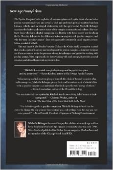 In The Psychic Vampire Codex, Michelle Belanger discusses the experience of being a psychic vampire, and also gives instruction on various aspects of a vampire's abilities. The main focus in all of this is the Vampire House she started, House Kheperu. Despite this, there is much value in this book for non-Kheprian psychic vampires, as well as -and maybe not so surprisingly- for anyone who works with subtle energy. In this book, she demystifies the psychic vampire and reveals it for what it is: a condition or state, whether desirable or undesirable; not a choice.