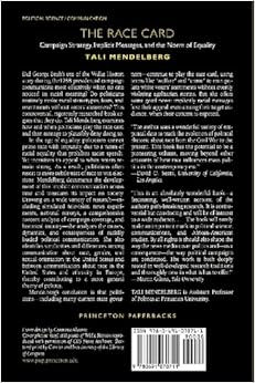 In The Race Card, Tali Mendelberg develops a comprehensive theory of the use of implicit racial messages in election campaigns and the relative effectiveness of these messages with voters. . . . Mendelberg takes this thesis and rigorously tests it at each level of analysis. . . . [Her] work is impressive. She has grounded a comprehensive theory of implicit racial messages in the literature on public opinion, the social psychology of prejudice, and the racial character of American political parties. She provides compelling evidence from a variety of sources: experiments, analysis of survey data, and content analysis. . . . Her conclusions make a significant contribution to our understanding of how racial messages work in election campaigns. Her findings will contribute to sociologists working in the fields of race and ethnicity, mass media, and political sociology."