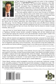 During my time as a Catholic, I would occasionally detect what I considered an anti-Israel bias in some statements from the pulpit or in the classroom. (I attended a Catholic college.) Until I picked up this book, however, I did not realize how deeply this bias ran. Sadly in many places, this shows itself not just as anti-Semitism, but in outright hatred directed toward the Jewish people. Most amazing of all, the worst of these statements - as Meotti shows with copious quotes - comes from Catholic clerics all over the Middle East. These are men appointed to their office by the Vatican, and who speak publicly without any reprimand from the Pope. These are the very churches suffering so much persecution at the hands of muslim terrorists today, yet they proclaim their solidarity with the "fedayeen." The quotes Meotti brings to light are so shocking that they literally stood my hair on end. Even more egregious is that the Pope (actually several of them) allowed these quotes to stand unopposed. On this count, this book is a must read - especially for anyone considering entering the Catholic Church.