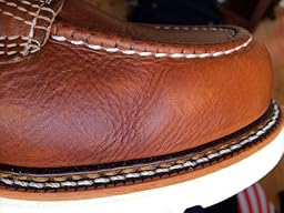 This time however, while searching for the Red Wings, I came across Thorogood Men's American Heritage 6" Moc Toe Boot. Welt construction? Check. Triple-stitched, full-grain leather? Check. Made in the good old USA? Check. That classic white sole? Check. My heart leapt when I saw the $120 price. Was it possible? Although the Thorogoods in the Tobacco Gladiator color certainly looked as handsome as the Red Wings in the pictures, a nagging doubt entered my mind. Surely they would break my heart by being the same odd orange color one sees on the Chinese knockoffs. Or they would be poorly sewn. Or fit badly. Nevertheless, driven by desperation and buoyed by Amazon's liberal return policies and the thought of saving $120 dollars, I pulled the trigger.