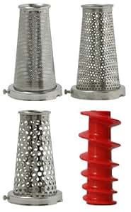 Expand the versatility of your Victorio model 250 food strainer. Kit includes four popular accessories designed exclusively for your Victorio model 250 food strainer so you can process all kinds of fruits and vegetables with ease. Kit includes: berry screen (fine), pumpkin screen (coarse), salsa screen (extra coarse) and grape spiral. All screens are stainless steel.