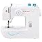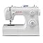 Easy threading system. Simple stitch selection. Straight, zigzag, satin, blind hem, decorative scallop and buttonhole stitches included. Heavy duty metal frame. Free accessories including 3 presser feet. Free arm. Automatic bobbin system. Dual spool pins. Carry handle.