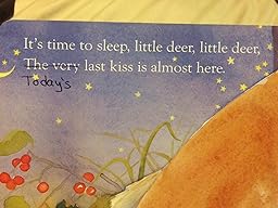 I love this book except for ONE THING. "The very last kiss is almost here". I would hope that you aren't sending your little ones to bed thinking they will never get another kiss from you. I always change this line to "Today's last kiss is almost here." Tomorrow has so many new opportunities for a million more kisses, and at bedtime you will get your last one for the day, again every single night. Maybe I'm sensitive, but that's just me.