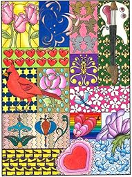 This is a very festive and fun book. Each page is filled with flowers and cute creatures like frogs, birds and bugs. There is a really neat page with mushrooms, very cools flowers, snails and butterflies and all pages have a lot of great detail. For a nice, relaxing wind down time book, this is a great one. The pages have a lot of versatility and charm. This is a book where each page is a fun one and this book doesn't contain just a couple of good pages, it's good throughout, especially if you like flowers, plants and colorful springtime creatures.