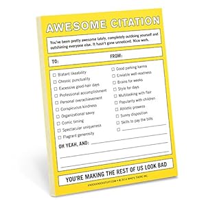 I work in an office with approximately 50 people. When birthday time ximes around I like to be fair and be able to give everyone a little gift. So far the responses and thanks I have received from my co-workers has been overwhelmingly positive. They love them and think they are hysterical too. I will keep purchasing knifty knock knock pads, but may change up the themes through the years!!
