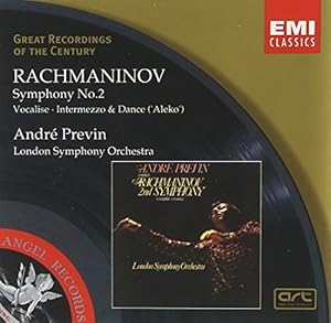 ANDRE PREVIN's wondrous recording of Rachmaninoff's Second Symphony for EMI is, justifiably, one of the treasures from the EMI catalog. This edition also includes a famous version of the Vocalise (though not ultimately as good as the Stokowski-EMI), plus Aleko -- the latter is more than just a filler track. On the technical side, this transfer is as close as possible to the old LP in terms of sonics and integrity. A nice job from the buddies at EMI. Among the 'competitors' to the Previn you'll find significant accounts by Edo de Waart (Philips), the excellent Anissimov (Naxos), Lopez-Cobos (Telarc), Ashkenazy (Decca), Jansons (EMI), the illuminating Temirkanov (RCA) and the exquisite Svetlanov (Moscow Studio). In my opinion, none of them can clearly surpass (or let alone equal) the Previn-EMI. The Previn-RPO on Telarc is no competition to the earlier LSO session : If the RPO is a 'very good' recording, then the LSO is a 'great' recording -- there's also a huge difference in term of interpretation that clearly makes the EMI disc a winner on all counts.