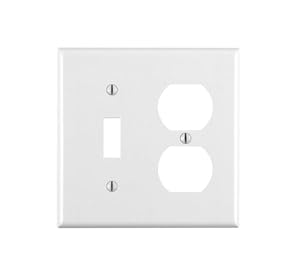• Leviton 88005 2-Gang 1-Toggle 1-Duplex Device Combination Wallplate, Standard Size, Thermoset, Device Mount, White