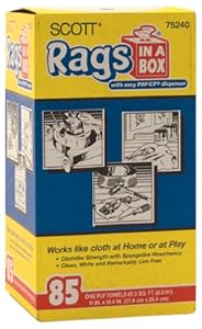 I wish I had read the description more thoroughly. The product description says "White unbleached rags Cotton/cotton knit blend" so I assumed this to be a box filled with scraps of cotton cloth(rags). This is a box filled with paper towel that has a texture of quilted toilet paper. If you are in need of shop paper towel you are better off going to Walmart and buying 2 "Shop Towels On A Roll" for $3.47 a piece which will come out to be 110 sheets for under $8 compared to buying rag in a box at $8.50 for only 85 sheets. If you are looking for actual cloth rags then this is not the product for you.