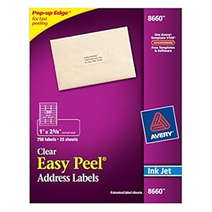 This item: Avery Easy Peel Address Labels for Inkjet Printers, 1 x 2.625 Inches, Clear, Pack of 750 (08660)