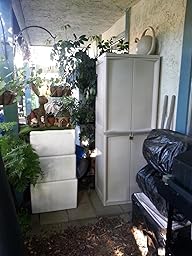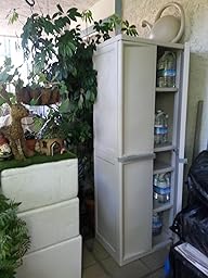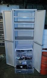 This item is terrific! I used it as a kitchen pantry cabinet. My kitchen does not have enough cabinet space so this item does the trick perfectly. It assembles in minutes just like lego pieces. No tools. The cabinet is all plastic and because of that it is easy to move. The shelf capacity of 40 pounds is good. It is much cheaper than it's competitors.