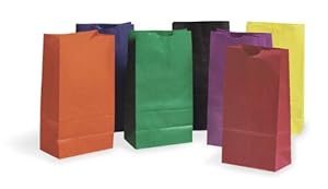 This set includes inexpensive, autumn-colored (not "rainbow") bags which are perfect for a quick and easy Halloween craft. My students glued bits of construction paper onto them to create jack-o-lantern, monster and robot trick or treating bags. They loved it.