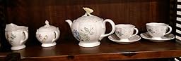 This is a very pretty set and affordable BUT...BEWARE. Lenox says it is dishwasher safe. They lie. I put the pot in the diswasher to remove the tea stains(all alone on the top rack with reservations) It turns out I was right....The butterfly wings fell off from the dishwasher spray. It was not roughly handled or in a place that anything could have touched it but water. Lenox by the way DOES NOT warranty it for falling apart when used as instructed and stands by the "dishwasher safe" label. It will cost $30 to replace the pot under their 50% off breakage warranty and they won't sell you a lid only.
