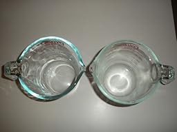 A long time ago I purchased a set of pyrex measuring cups: 1 cup, 2 cup, and 4 cup. I love them and use them daily. I have found that the one that I use the most is the 2 cup. Because of how often I use this, it seems like it is always dirty. So I finally ordered a second one. But it is not the same! The markings are the same, the handle is the same, but the pour spout is different! My old one pours wonderfully; I can pour it fast or slow and it doesn't spill. The new one has a narrower pour spout. Somehow this causes it to pour down the side of the measuring cup and all over the counter instead of where I want it to go. If I pour very slowly (about the same speed as my slow fridge water), I can sometimes avoid spilling. I almost returned it after the first time I used it and I wish I had; I would rather wash the other one repeatedly while making something than use my new one. I took some pictures to post showing the change, but I cannot seem to find how to do it with this product.