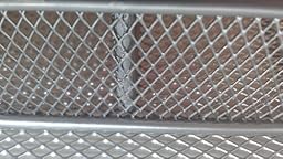 I was very disappointed with this item. I thought the silvery colour was the actual colour of the metal. Instead, the silver is a dull, easily chipping layer of paint; at the sites of the chips, the metal is powdery and black. This tray is also very poorly finished. There are numerous places where the mesh is broken, and the sharp metal edges cut you! The cheap construction of this item is further evident by the misaligned bottom metal setting.