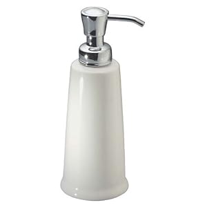 This soap dispenser might have been made for the bathroom but it works equally well in the kitchen. It has a nice clean look to it, is well balanced and has a good pump action. Best of all, the base is ceramic so our countertops are free of the rust rings we used to get from other soap dispensers.