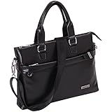 Received a day earlier than promised! Is of better quality than I expected. My laptop fits perfectly along with other items. It looks so professional and is very comfortable on my shoulder. Straps are big enough to carry over my shoulder even with my heavy coat on. Heavy duty zippers too. Glad I purchased this product! It is well worth the money!