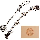 Bought this as a retrieval toy for my Lab/Pointer, He would tear this thing up in less than 5 minutes if I allowed him,,he pops tennis balls instantly so as i said we just use it for retrieving! I really like it, it has some weight to it so it can be flung or thrown very far, I have a bum shoulder so throwing tennis balls or his other Kong toys really tends to hurt. But with the rope I can fling it very far underhanded and it does not hurt as much!