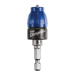 I don't know what I was doing wrong here, the dimpler didn't do much dimpling. In most instances it pierced the paper. Maybe user error? The big dissapointment was when my drill fell off the ladder... the simpler didn't survive the fall. I would expect Bosch to make work site rugged materials.