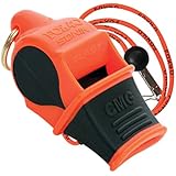 This whistle is probably one of THE loudest whistles on the market, which is great, but the thing that really makes this whistle great is the fact that it's pealess. A pealess whistle means that it doesn't have the little ball on the inside that wiggles around to help the whistle make sound. The pea may seem great and all, but the "pea" inside the whistle will stick to the sides if water gets in it which will render the whistle useless. Therefore, the pealess whistle is the superior choice. The Fox 40 CMG Whistle also has a little rubber mouth guard around the opening. This mouth guard makes it much easier on your teeth and on the whistle if you plan on using it for prolonged periods of time (like at a sporting event or when training a dog). The metal ring that secures the whistle to a lanyard is a double loop, which is much stronger than just a single loop, so you don't have to worry about losing your whistle. If you're lost, don't even bother shouting for help. Blow on the whistle instead, you'll save energy.