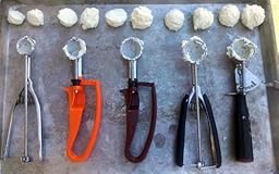 For years I've used two stainless steel scoops for cookie-baking. One regular sized scoop and one comparably sized (i.e. jumbo cookie-sized) to the black-handled Zeroll. The stainless ones have been the bain of my cookie-baking in that the metal-toothed gear at the bottom of the handle would frequently "jump the tracks" and leave the inner ring hanging outside the scoop. Several minutes and a stout kitchen knife would then be needed to pry the teeth back in alignment. No more will that be necessary - these scoops work flawlessly. They scoop through stiff batters and release the dough smoothly with no wailing or knashing of teeth - mine or the scoop's.