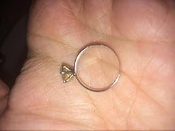 Absolutely horrible purchase, and I wasn't expecting much for this price. The ring arrived tarnished / rusted to a shade of pink or orange. The stone itself looked orange or brown, and even after scrubbing it the metal still has a pink color. On top of this, the band is NOT 3mm as listed, it's much thinner, and the prongs look like something out of a gumball machine. I can't find a way to contact the seller and I don't feel like I should have to pay return shipping for such a grossly misrepresented item. I've added pictures before and after the scrubbing, and next to my 3mm palladium wedding ring so you can see the color and size difference.