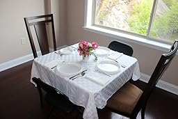 I bought two of these for 2 card tables to make a little "Cafe" for Mother's Day since my dining room table had not been delivered following a move. They are bright white, and worked very well, looked lovely, washed up nicely and needed no ironing.