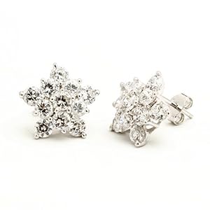 The look of white gold at a silver price! These sterling silver flower earrings perfectly mimic white gold and diamonds with their rhodium finish and cubic-zirconia stones. Rhodium is a metal that is part of the platinum family. High-end silver and gold are rhodium treated to prevent oxidation and to have the white shiny look associated with platinum and white gold. These earrings' rhodium finish will prevent them from tarnishing.