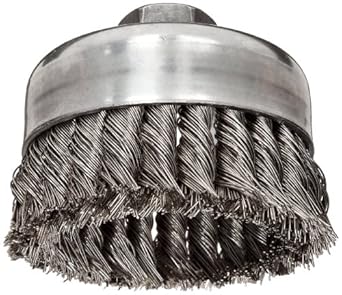 This item: Weiler Wire Cup Brush, Threaded Hole, Stainless Steel 302, Partial Twist Knotted, 4" Diameter, 0.014" Wire Diameter, 5/8"-11 Arbor, 1-1/4" Bristle Length, 9000 rpm (Pack of 1)