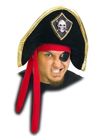 Pirate Hat High Seas Adventure starts here! This black pirate hat has a grey skull and crossbones on front, and a flexible metal wire inside the fabric helps the hat hold it shape. Red satin attached at bottom and ties at side. Available size: One size fits most adults Hat is adjustable and has secret pocket inside. Made of 55% cotton and 45% polyester.