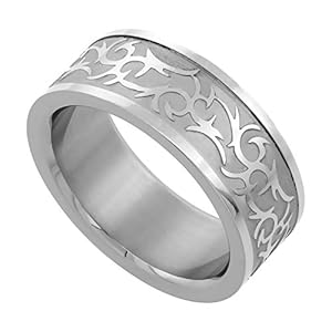 Surgical Steel 8mm Tribal Design Ring Wedding Band, sizes 7 - 14