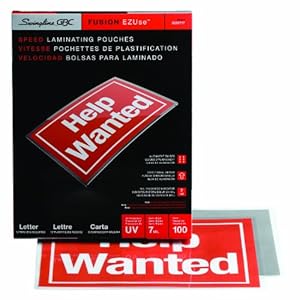 This item: Swingline GBC EZUse Thermal Laminating Pouches, Letter Size, Speed Pouch, 7 mil, 100 Pack (3200717)