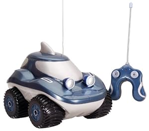 My son was thrilled to see that Santa had left this toy. The first thing we did was walk down to the pond to see if it really worked. The "shark" was driven all the way down to the pond and then into the water he went. He was easily controllable in the water and on the land. The only problem was that it wasn't able to get out of the water on it's own. No matter what direction and speed this toy was going, it was quite difficult to maneuver out of the pond. However, when driven in the shallow creek, it did great! One of my 6 year old son's favorite toys!!