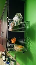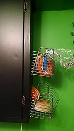 So far, so good. I bought two of the Medium baskets, put some picture hooks on the side of my (wooden) kitchen cabinet, and hung the baskets up by their sides to use for bread storage. The wires that make up the sides of the baskets are thin, so I know I won't be able to store anything heavy, but I think they will work for bread.