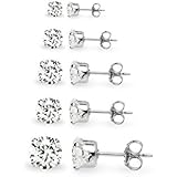 • 5 Pair Set of Sterling Silver Round Ball Stud Earrings, Includes 2mm 3mm 4mm 5mm 6mm Plus A Free Gift Box