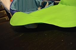 We have another one of these in the green color and LOVE it. We haven't had any problems with the material that it is made of and it has washed clean and not stained anywhere near as easily. For some reason the pink version is made from a thicker rubber that cracks easily and the suction cups get warped so that they do not stick to the table. I can't figure out why the two colors are so different, but I just wanted to pass on that the green version of the same product is WAY better quality. I have used two different pink ones and both of them have cracked and will not stick to the table as well. Works great as a placemat to give your kid a place that you can put food, but don't count on the little trough catching any food once it gets cracked on both sides. We have had the green one for longer, use it daily, and it still looks brand new. We have used the pink one a total of about 15 times and it looks like we have used it for years. I just wanted to pass on this info specifically about this color. I would give raving reviews about the product itself if they all worked like the green one!